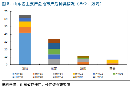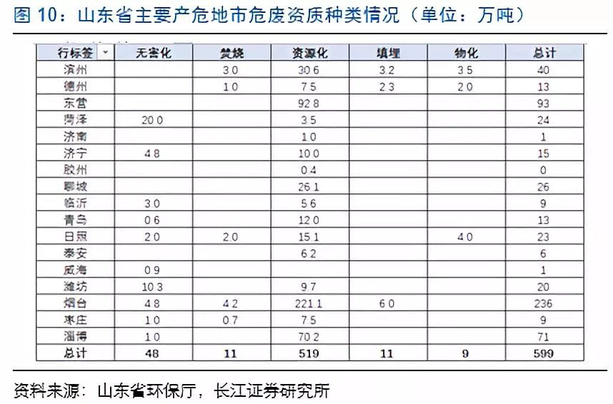 目前山东省危废产能达599万吨,烟台东营占55%